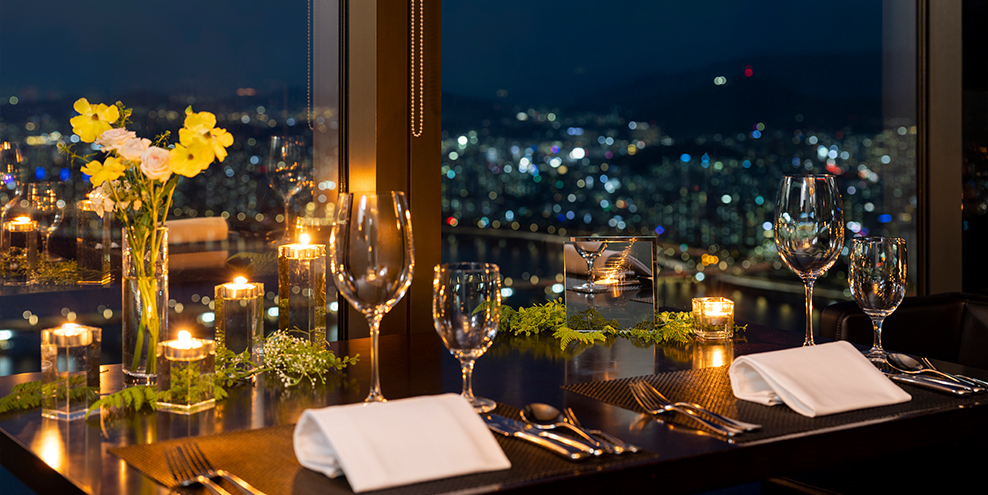 창을 향해 배치된 연인 좌석은 높은 파티션을 통해 독립된 느낌으로 이용 가능합니다. 아름다운 서울의 야경을 둘만의 공간에서 바라보며 로맨틱한 다이닝을 즐기실 수 있습니다. 프러포즈, 둘만의 기념일 같은 특별한 날. 서울 전경이 한눈에 보이는 공간에서 잊지 못할 시간을 가져 보세요. 예약부터 이용까지, 전담 매니저가 상세히 안내해 드립니다.